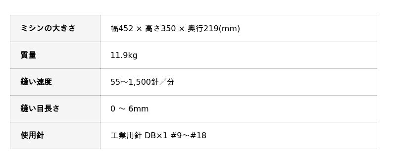 - 卓越した厚地の縫製力: 厚地の縫製時に、新開発の太糸専用針板 ・太糸専用スムース押え・太糸テンションを使用することにより、目飛びがなく、糸締りの良い縫い目を実現します。
