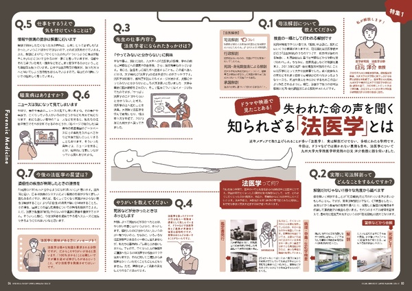 132号では、「法医学」をテーマとした特集や、2005年のキャンパス移転開始から今年(2025年)で20年を迎える伊都キャンパスの軌跡をたどる企画、学生寮の魅力や部活動の紹介など、幅広い分野のコンテンツが掲載されています。