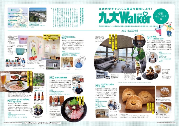 また前号の131号に続き、「九大LOVEWalker」と題した、キャンパス周辺のさまざまなスポットを紹介する企画も登場。今号では伊都キャンパス周辺の人気店から眺望を楽しめる店まで、カフェや雑貨店など多彩な内容を紹介しています。