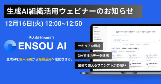 個人利用から組織活用へ―生成AIで“成果を出す”ための組織戦略とは?ENSOU AIが無料ウェビナーを開催