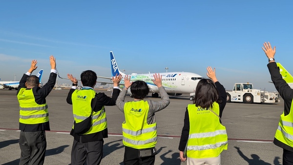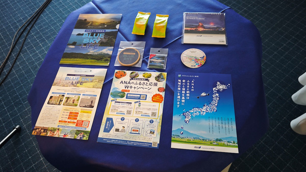 ANA ふるさとJETの運航はANAウイングスが担当し、国内線全路線が対象となります。1機だけの特別塗装かつ、特定の路線に固定されず日本全国を巡回するとのこと。そのため狙って搭乗するのは難しいかもしれませんが、もし運良くANA ふるさとJETに当たったら、出身県の花のイラストを探したり、特別デザインのエプロンやアイテムがチェックできるわけです。