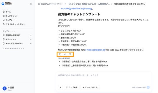 株式会社Digeon(本社:兵庫県神戸市、代表取締役社長:山崎祐太)は、法人向けChatGPTサービス「ENSOU AI」において、新機能「解決した/解決しなかったフィードバック機能」を正式リリースしました。