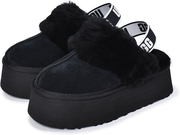シープスキンのふわふわ感と、UGGロゴ入りのバックストラップが特徴で、冬でも暖かく快適に履けるのが魅力です。