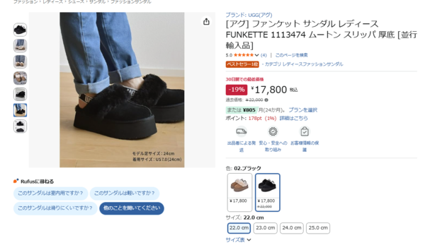 UGGの人気厚底サンダル「ファンケット」がメーカーサイト表示価格から19%オフの17,800円で、Amazonタイムセールに登場!