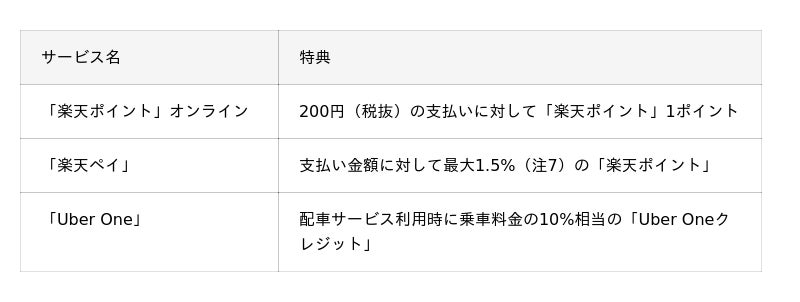 (注5)「Uber Eats」では商品代金、「Uber」では乗車料金が「楽天ポイント」進呈の対象となります。