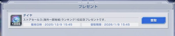 バンダイナムコエンターテインメントは12月9日、iOS/Android/PC向けガンダムシミュレーション「SDガンダム ジージェネレーション エターナル」の海外一部地域でストアセールスランキング1位達成したことを記念し、ダイヤ3000個を全ユーザーへ無料配布した。