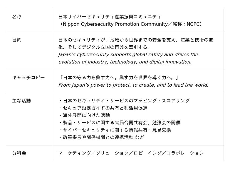 日本サイバーセキュリティ産業振興コミュニティ(NCPC)設立背景について