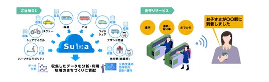 さらに、Suica の移動データを活用することにより、様々な地域でのお子さまやお年寄りの見守りサービスにも対応した”お気遣い”サービスの実現を目指し、”不”安の無い安全・安心な社会を当たり前にします。