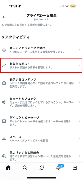 「設定」→「設定とプライバシー」→「プライバシーと安全」をタップ。次に「あなたのポスト」をタップし、「あなたがポストする画像/動画はセンシティブな内容を含むものとして設定する」をオフにしておこう。