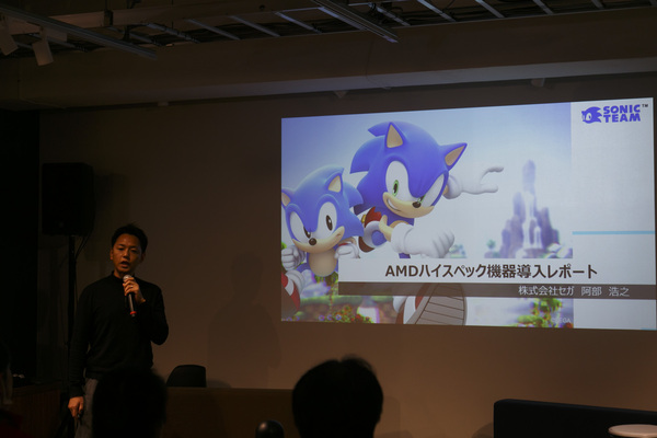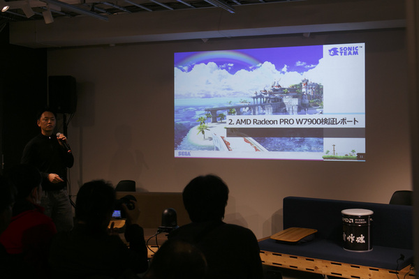ふたりめのゲストは、セガでデザインセクションマネージャー兼リードキャラクターアニメーターを担当している阿部浩之氏。セガの開発現場では、Radeonが活躍しているそうだ。ことの発端は、AMDから検証目的で機材提供を受けたこと。これがきっかけで阿部氏の開発チームではAMD製品を運用するようになり、いまは導入しているとのこと。