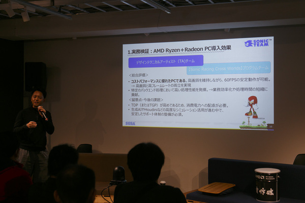 AMDからセガに提案されたPCは「Ryzen 9950X3D」と「Radeon W7900」、「Ryzen RX 9070 XT」を搭載。主に「ソニックレーシング クロスワールド」デザインチームやプログラムチーム、パブリッシングチームで活用したそうだ。