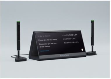 両面ディスプレイを搭載し、互いの言葉を瞬時に翻訳して表示することで、自然な対話がそのまま成立する体験を可能にします。さらに、高感度マイクによる精緻な音声認識や、人の存在を感知して自動で画面が起動するスマートセンサー、会話履歴をワンタッチで消去できるプライバシー設計など、公共空間でも直感的かつ安心して利用できるように設計されています。