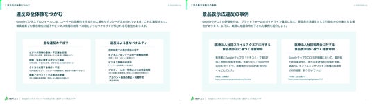 本資料は、公式ガイドラインを基に、自店舗が違反していないかを即座に確認できるチェックガイドです。よくある違反事例や判断に迷うグレーゾーン、悪質な業者への対策まで、安全な運用を守るための実務知識を凝縮しました。