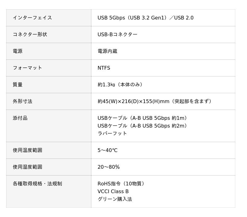 本商品はUSB 5Gbps(USB 3.2 Gen1)対応の外付けハードディスクです。信頼性に定評のあるWD社製Ultrastar(エンタープライズ向けハードディスク)を搭載し、5年保証付きのため、長く安心してお使いいただけます。Ultrastar採用の外付けハードディスクは当社初となります。