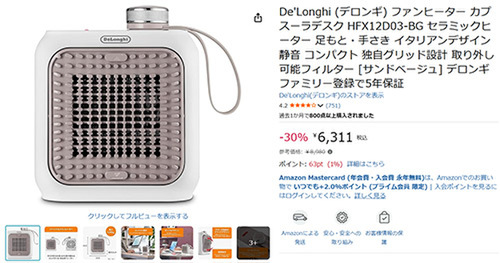 【Amazonセール】De'Longhi(デロンギ)ファンヒーター カプスーラデスク「HFX12D03-BG」登場!