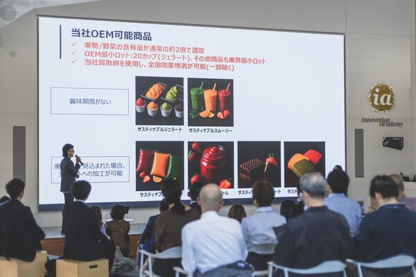 フォレストバンクは、それらを買い取り、賞味期限のない食品(ジェラート・ピューレ・ジャムなど) に加工する。OEM先はすでに全国で300社を超え、道の駅、ホテル、保育園、YouTuberとのコラボまで多岐にわたるという。