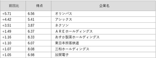 今回のIRサイトランキングにおいても、ウェブサイトのリニューアル、コンテンツの拡充や新規機能の追加等により、前回調査と比較して格段に充実したIRサイトが数多く見られました。そのなかでも特に大きく得点を伸ばした企業は次の通りです。