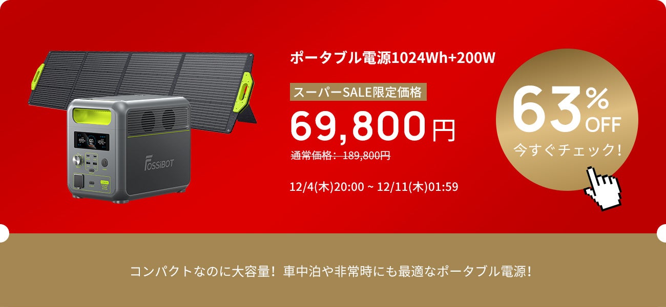 【63%OFF】FOSSiBOT ポータブル電源F1200+ソーラーパネル200W セット