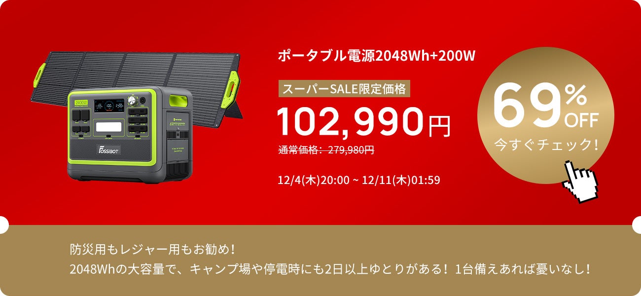 FOSSiBOT ポータブル電源2048Wh+ソーラーパネル200W セット