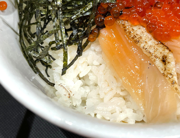 気になったのはご飯との相性。刻み海苔がそえられてあるものの、白米の上に敷かれているわけではないので、脂の多いサーモンがご飯に直接触れ、魚の脂の風味が立ちやすくなっている印象でした。