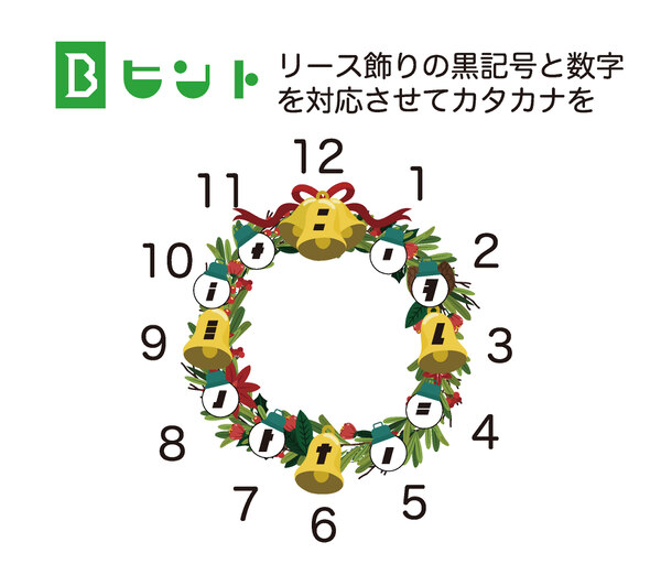 各番号に対応した黒記号を組み合わせると、1文字のカタカナになる。
