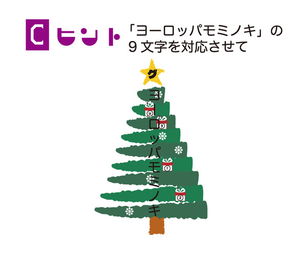 ツリーの最上段が「ヨ」、最下段が「キ」。あとはプレゼントに書かれた番号の順に読んでいけばいいだけだ。
