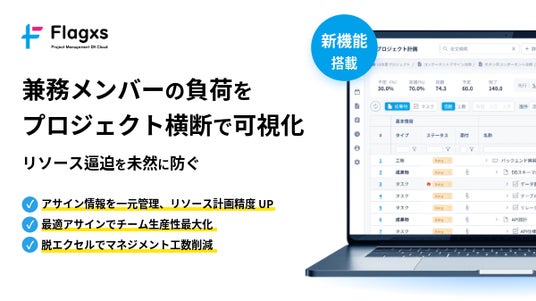 プロジェクトマネジメントDX プラットフォーム「Flagxs(フラッグス)」プロジェクトを横断したリソース管理を実現する新機能「メンバー別負荷状況」をリリース