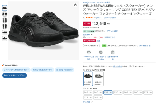 アシックスのHADASHIWALKER GTXが23%オフ!