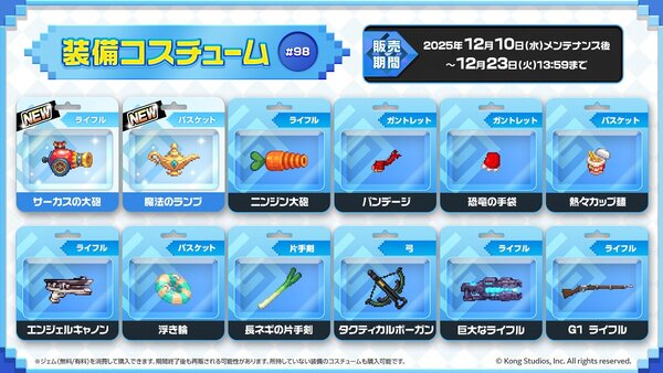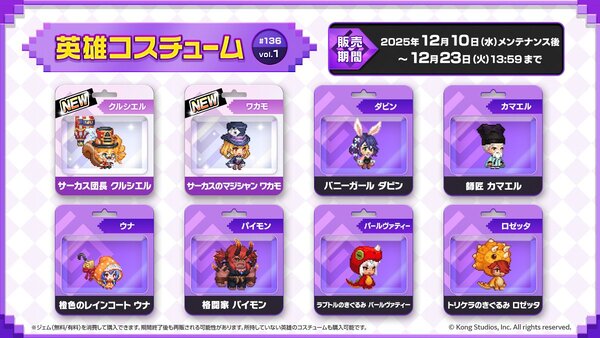 英雄および装備の新規コスチュームがショップに登場。既存のコスチュームの一部とあわせて期間限定で販売する。この機会にぜひ英雄たちのおしゃれを楽しもう。販売期間は、2025年12月23日13時59分まで。