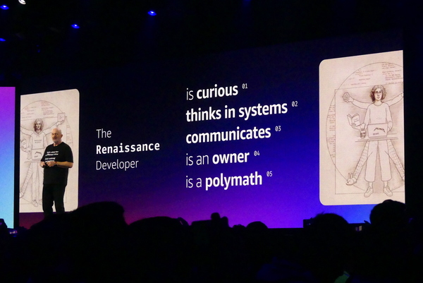 ボーガス氏が最後にビルダーに語ったのは、「自分たちの仕事に多くの人たちは気づかない」という事実。Amazonの購入ボタンをクリックする人も、商品カタログを見る人も、サプライチェーンに関わる人も、エンジニアの仕事について語ってくれることはない。だからこそ、「自分の仕事に誇りを持ってほしい。プロとしての誇りを持ち、最高のビルダーとしてきちんと仕事することが大事」というのがボーガス氏の最後のメッセージ。「私はみなさん方、ビルダーを非常に誇りに思っている」と胸いっぱいの感謝の気持ちを告げたボーガス氏は、満席のスタンディングオベーションの中、講演を終えた。