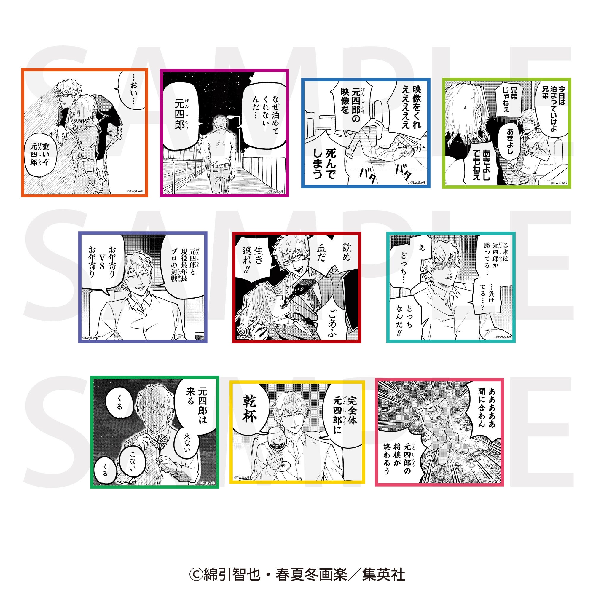 ラインナップ:「重いぞ元四郎」「なぜ泊めてくれないんだ・・・」「死んでしまう」「あきよし」「お年寄りVSお年寄り」「生き返れ!!」「どっちなんだ!!」「花占い」「乾杯」「元四郎の将棋が終わるう」[全10種]