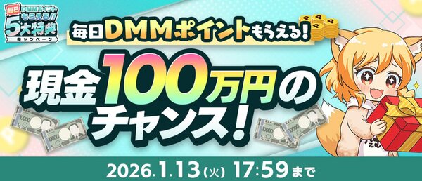 【キャンペーン1】毎日DMMポイントがもらえる&現金100万円が当たるチャンス!
