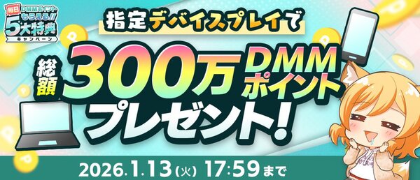 【キャンペーン5】指定デバイスプレイでDMMポイントをゲット!