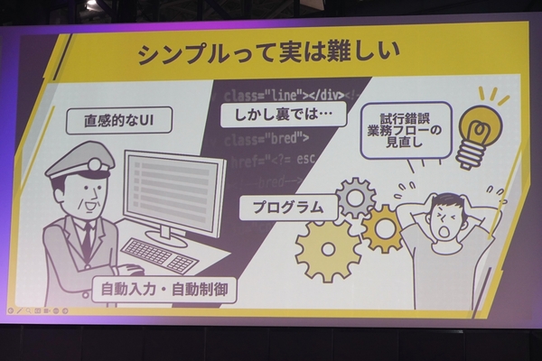 しかし、完成に至るまではトラブルの連続だった。試用を始めると、想定外のレコード削除や入力漏れなどが頻発。こうした問題は、従業員を教育するのではなく、シンプルな仕組みで解決することにこだわった。ただ、「シンプルって実は難しい」と漆川氏。直感的なUIの裏側で、自動制御や自動入力の機能を走らせて、何度も業務フローを見直すことで、完成に漕ぎつけている。