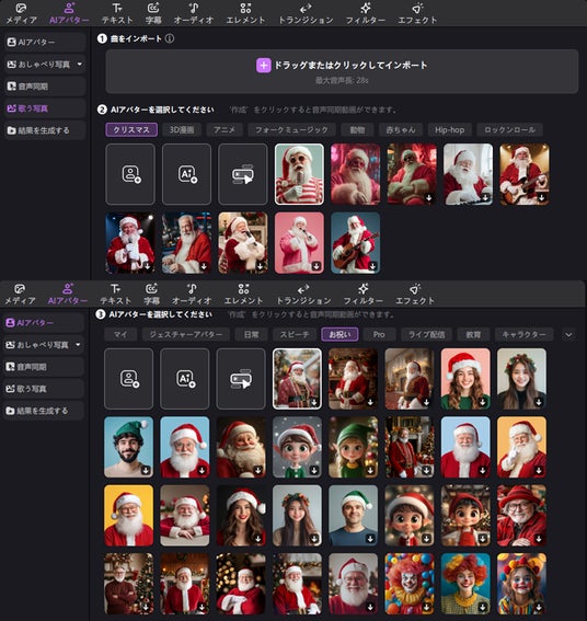 サンタが歌ったり踊ったりする、パーティ向けの楽しいクリスマス動画も簡単。