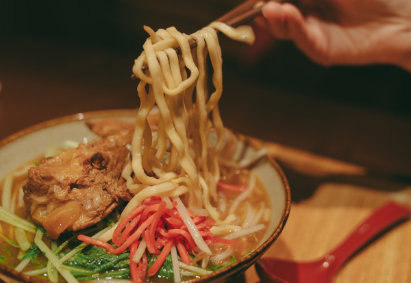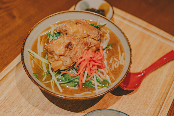 麺は、コシのある平打ちタイプの沖縄そば麺。味噌スープをしっかり含んで、啜るたびに宮古みその芳醇な香りが鼻を抜けていきます。そして丼の中央にどっしりと構えるのが、ゴロリと大ぶりな軟骨ソーキ。箸でホロっと崩れるほどやわらかく、口に入れると旨味がじゅわっと広がり、コク深い味噌スープと渾然一体に。食べ終わる頃には、体の芯までポカポカに温まっているはずですよ。
