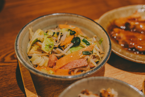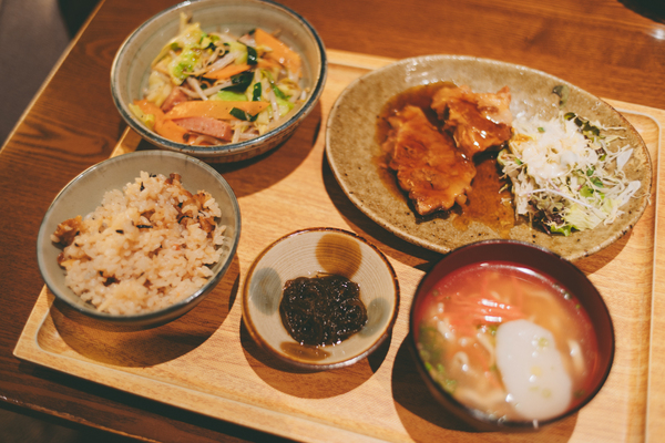「ワッター」とは沖縄の方言で“私たちの”という意味。その名の通り、自分好みにカスタマイズできるのが魅力です。ゴーヤチャンプルとフーチャンプルから選べる“チャンプル”と、鳥カラ揚げ、軟骨ソーキ煮から選べる“肉料理”に加え、ごはん、小鉢、ひとくち沖縄そばまでついたボリューム満点の定食は、ランチメニューの中でも不動の人気No.1。今回は、沖縄らしさが光る今回は、フーチャンプルと軟骨ソーキ煮をチョイス。さらに、ごはんは+110円で沖縄風炊き込みごはん「ジューシー」に変更してみました。