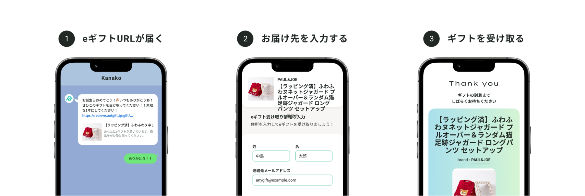 eギフトURLから住所を入力いただくだけで対象商品が届きます