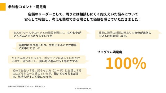 パフォーマンス向上と休職・離職防止を両立する、AI×コーチのハイブリッド型社員支援サービス「BOOST」を提供するBoost Health株式会社(本社:東京都中央区、代表取締役CEO:芳賀彩花、以下「Boost Health」)は、株式会社ファイブスターの従業員を対象とするファイブスター労働組合(所在地:滋賀県彦根市、以下「ファイブスター労働組合」)と共同で実施した、飲食チェーン店長・主任向けBOOSTプログラムの実証結果をまとめた記事を公開いたしました。