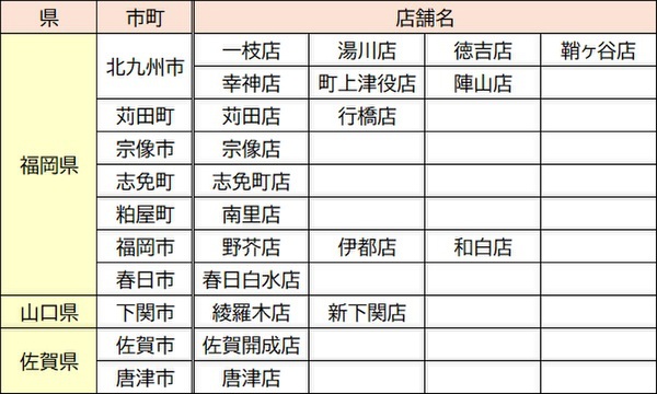【対象店舗】福岡県・山口県・佐賀県の対象店舗