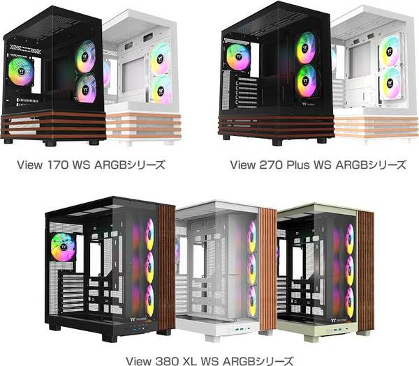 アスクは、Thermaltake社製の新製品としてミニタワー型PCケース「View 170 WS ARGB」シリーズ、ミドルタワー型PCケース「View 270 Plus WS ARGB」シリーズ、および「View 380 XL WS ARGB」シリーズを12月19日に発売する。価格は11,980円前後から23,980円前後となる見込み。