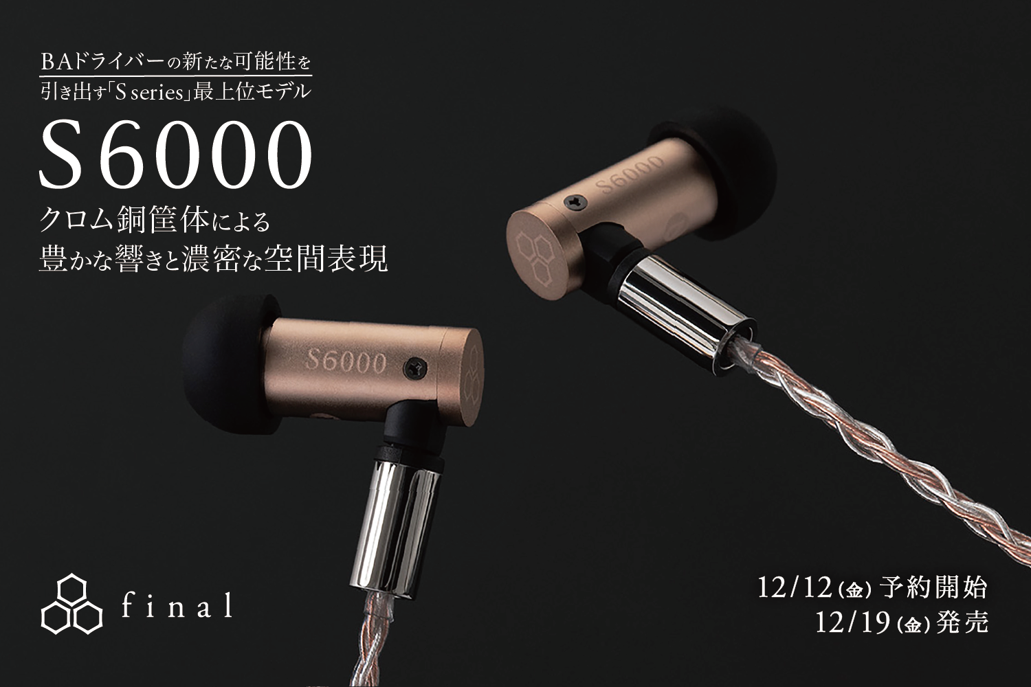 国内オーディオメーカー株式会社final(代表:細尾 満、本社:神奈川県川崎市)は、有線イヤホン「S6000」を本日2025年12月12日(金)より予約開始、2025年12月19日(金)より発売いたします。