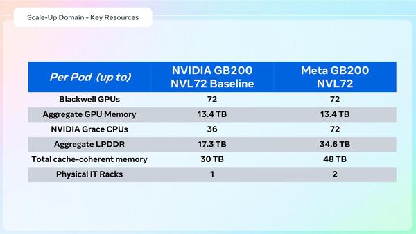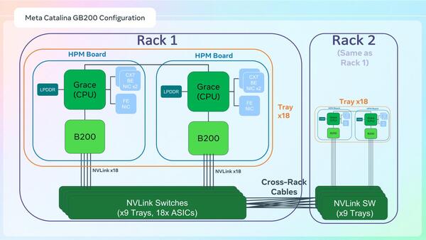 MetaはGB200 NVL72をベースにしたCatalinaと呼ばれるシステムを導入している。