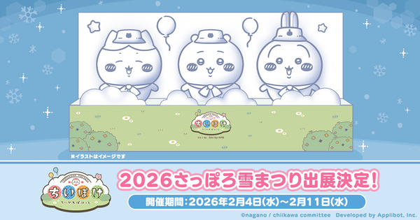 スマホアプリ「ちいかわぽけっと」が、2026さっぽろ雪まつりに出展。2026年2月4日から雪像が登場する。来場者限定のノベルティープレゼントも予定とのこと
