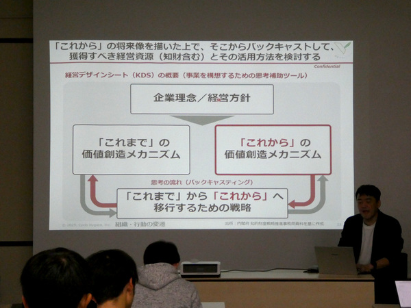 中長期的な視点に立った際、知財も単なる権利取得の話ではなく、将来の事業やビジネスモデルを支える基盤であり、競争力の源泉として捉える必要が出てくる。バックキャストの視点では特許などの知財を取ることが目的なのではなく、その知財がどのような役割を果たし、どのように事業や社会実装につながっていくのかを、あらかじめ描いておくことが求められるということだ。知財は守りの道具ではなく、将来像を実現するための戦略的な資産として、ビジネスモデルの中に組み込まれる必要があると小林氏はコメントしていた。