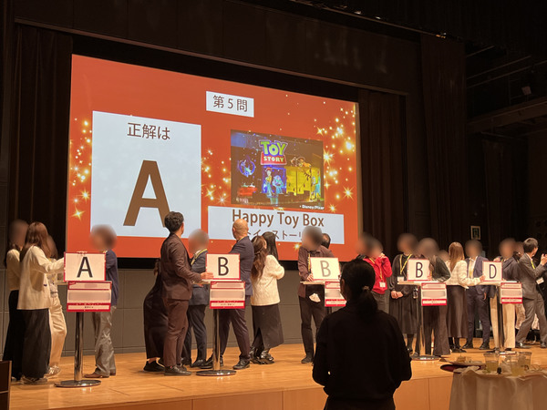 クイズのテーマは「丸の内」「BRIGHT HOLIDAY2025」「ディズニー」などなど。まずはA~Dの4ブロックに分かれて予選会を実施し、各ブロックで勝ち抜けた4チームが準決勝、決勝へと進んでいく流れです。