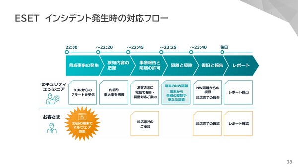 ESET製品のサポートは、国内総代理店であるキヤノンMJグループが体制を整えている。ESET PROTECT MDRは24時間365日の監視体制を国内拠点で提供し、日本語対応しているため、緊急時にも安心できるサポート体制となっている。