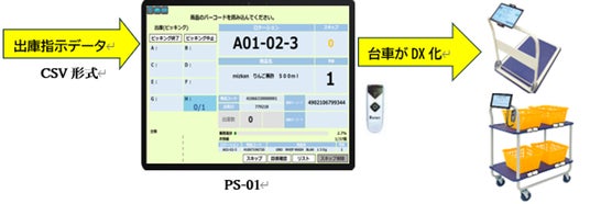 従来の倉庫DXは高額投資と長期導入が課題でしたが、PS-01はこれまで構築してきた多数の業種業態ピッキングシステム開発ノウハウを活用し、タブレットとバーコードスキャナーを接続し出庫指示データを入力するだけで即日稼働。既存の中小規模倉庫でも負担なく導入できる画期的なソリューションです。