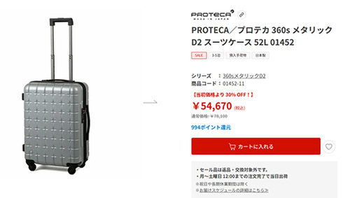 PROTECA/プロテカ 360s メタリックD2 スーツケース 52L