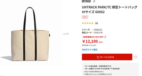 UNTRACK PARK/TC 横型トートバッグ Mサイズ